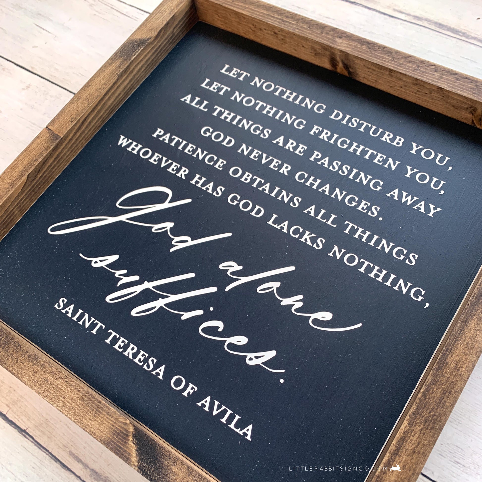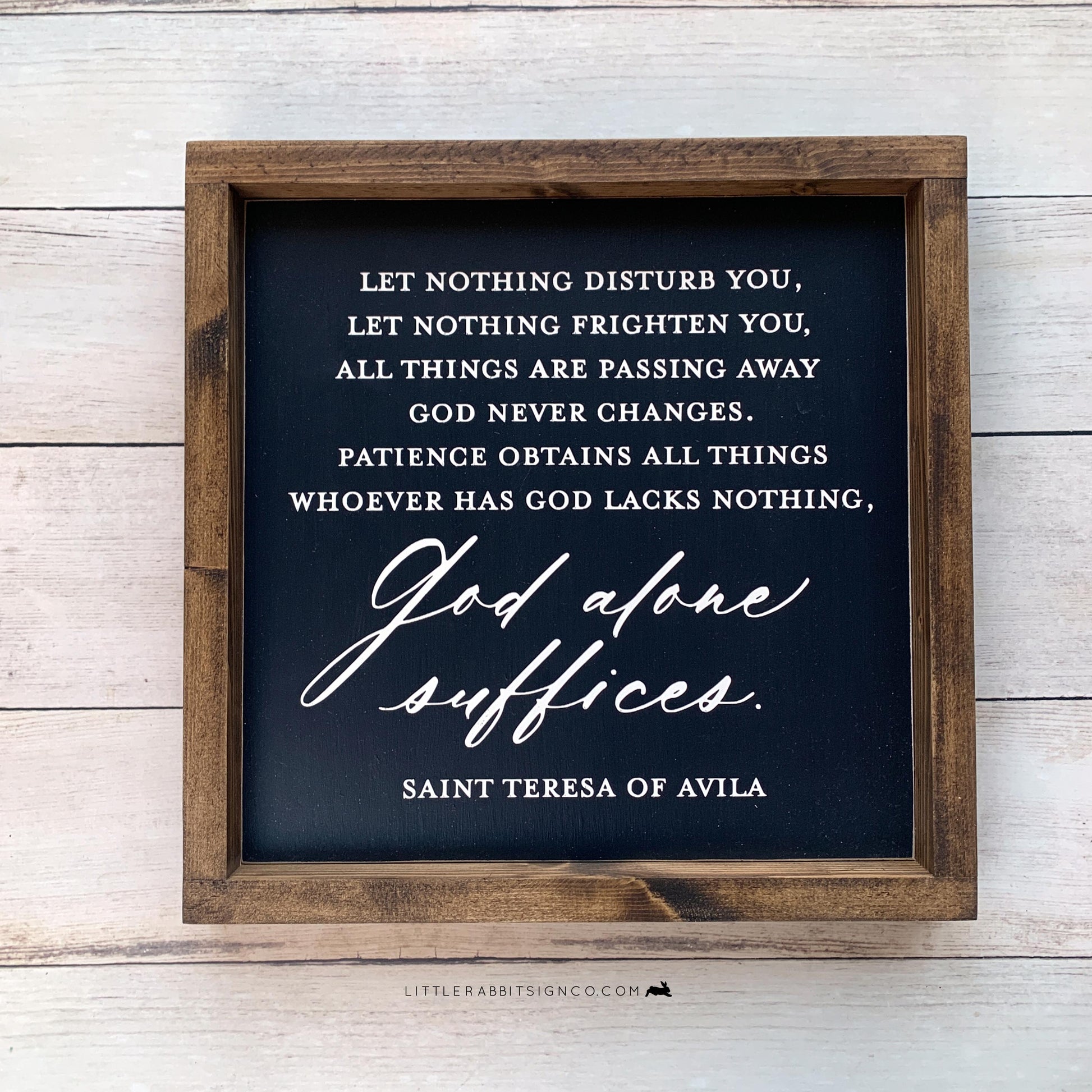 "Let nothing disturb you. Let nothing frighten you. All things are passing away. God never changes. Patience obtains all things. Whoever has God lacks nothing. God alone suffices." Saint Teresa of Avila